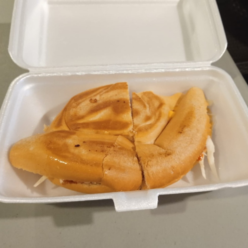 Pan cubano, pollo, pierna, queso, vegetales y aderezo.